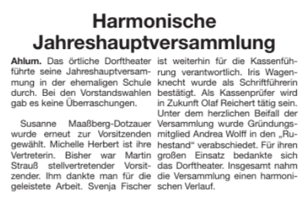 Termin für die JHV und wir haben unser neues Stück ausgewählt